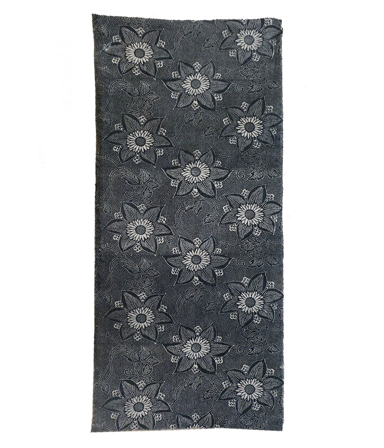 This is a deeply toned, indigo dyed cotton length of katazome cloth that shows what appears to be a fairly often seen pattern, that of flowers.