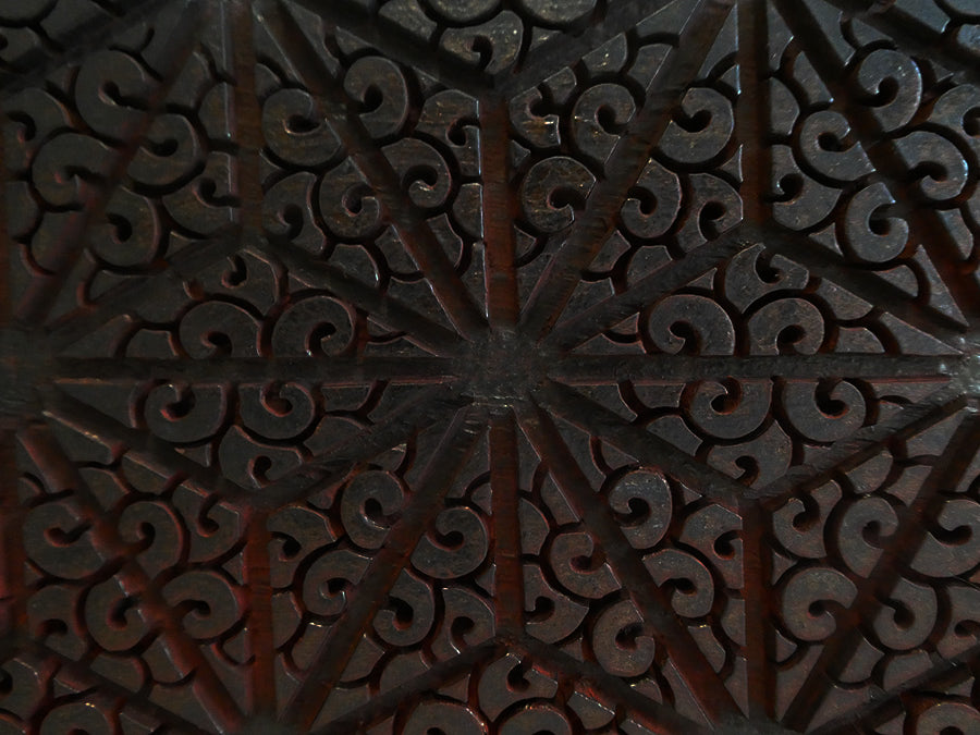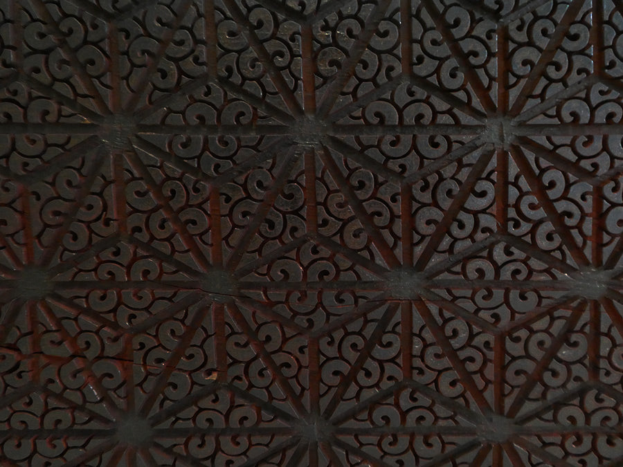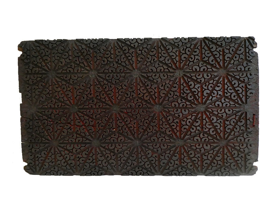 This particular board was used to create a white or resisted pattern and shows one of endless variations on the traditional asanoha or hemp leaf pattern.