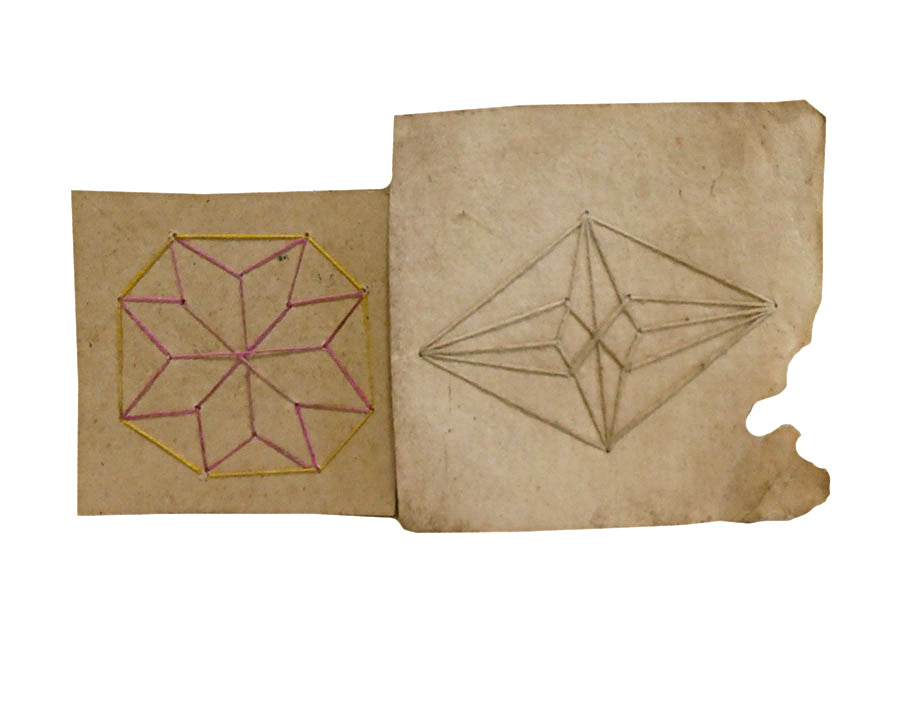 Shown here are the front and the back of these small cards, each one was done by a girl or young woman in order to practice or to learn how to stitch these meaningful designs.