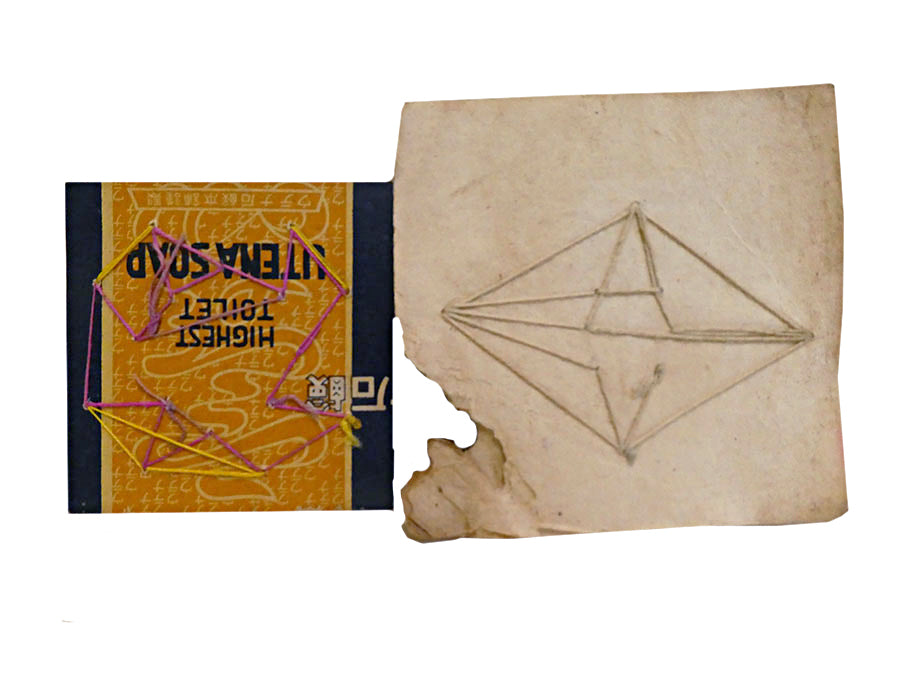 These protective stitches are called semamori, and offered here today is a pair of two semamori, each one stitched onto a paper or card--when stitched on a child’s garment, a semamori would have been placed on each of the kimono’s two ties.