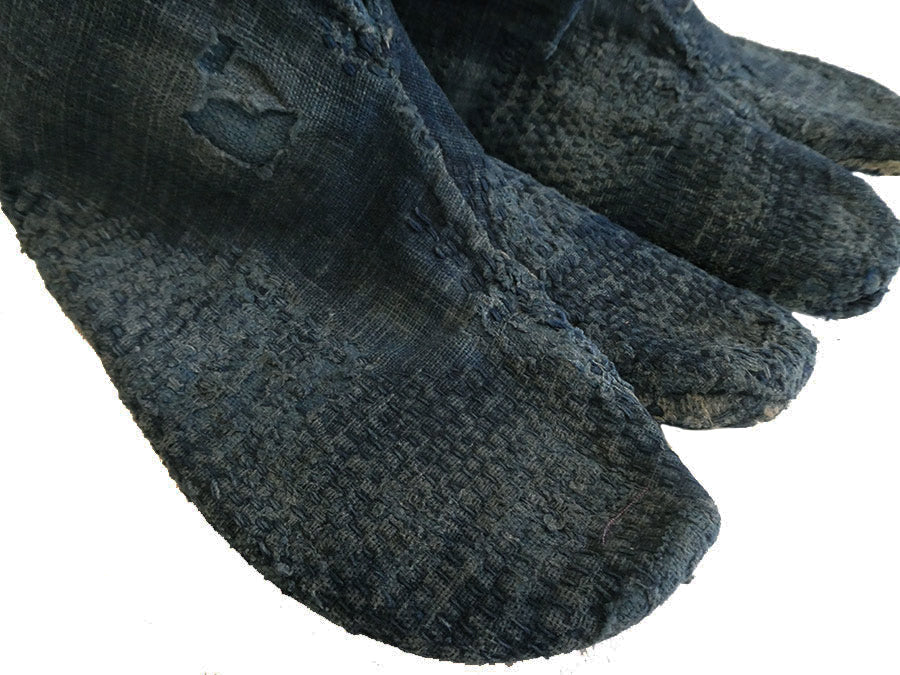 A Pair of Very Good Quality Sashiko Stitched Tabi: Good Age and Hand Spun Cotton Cloth