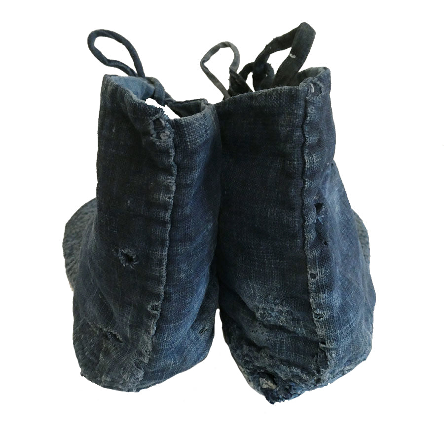 This pair of well-worn tabi is made from hand spun, hand woven, indigo dyed cotton and by their good, used condition and their beautiful wear patterns, this pair is an exemplary one and one to be considered for your collection for the reason of its high quality.