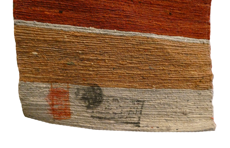 This rustic obi gives the impression that it is sakiori or ragweave, but in actual fact is seems to be woven from a white warp with what appears to be weft material that is thick cotton yarns.