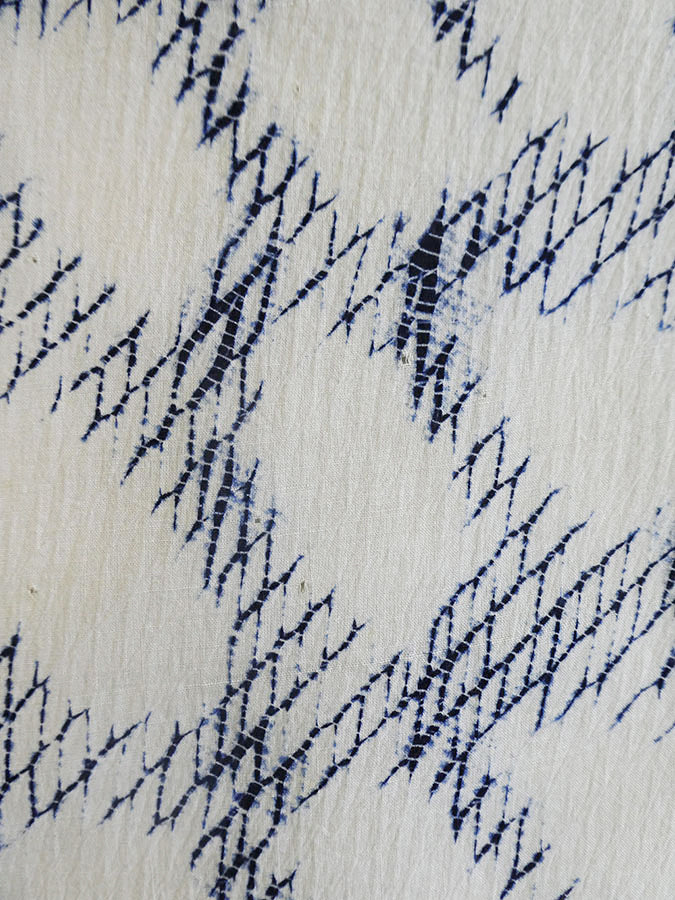 This treasure was no doubt made in Arimatsu or Narumi, the tandem towns that were the nexus of shibori production and innovation in Japan. More than likely the indigo is not botanical, although it might be partially synthetic/partially botanical.