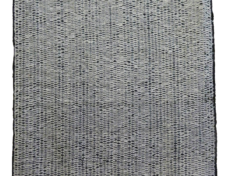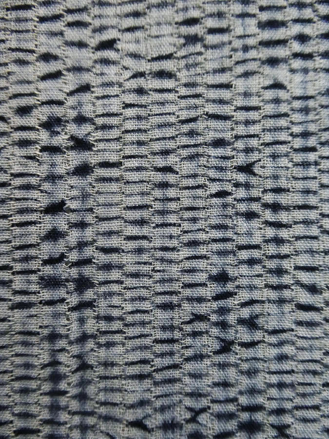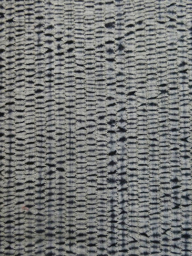 The result of this process is as you see here: a series of small, regularly spaced blips of indigo that dot the entire length of this lightweight cotton, which was taken from a yukata or an unlined, casual kimono.