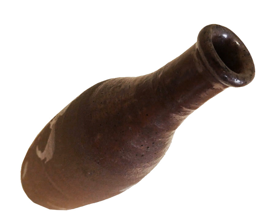 The top portion, the mouth of the flask is entirely coated in one of the two glaze colors that is flung on the body of the tokkuri, presumably to help the flow of sake from the flask.