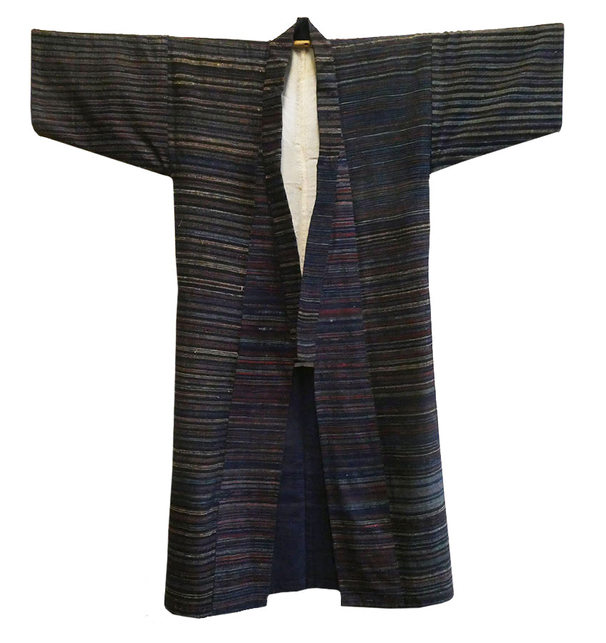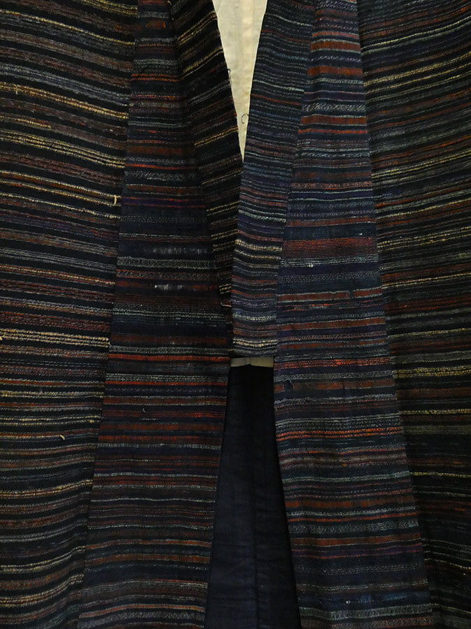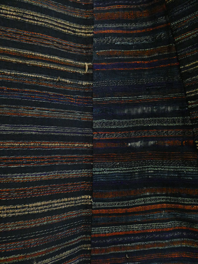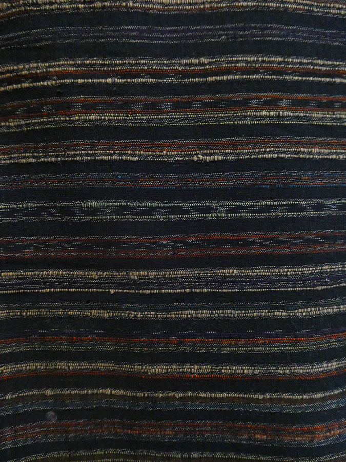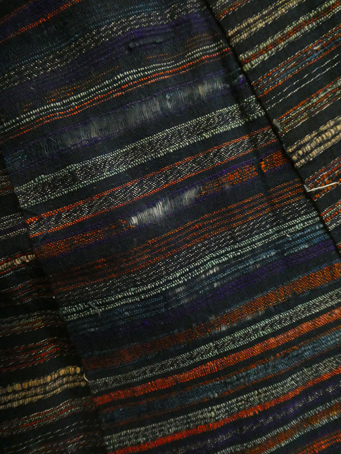 Zanshi ori is cloth that is woven from threads either leftover from home production of yarn making, or from broken threads that were purchased from local commercial weavers.